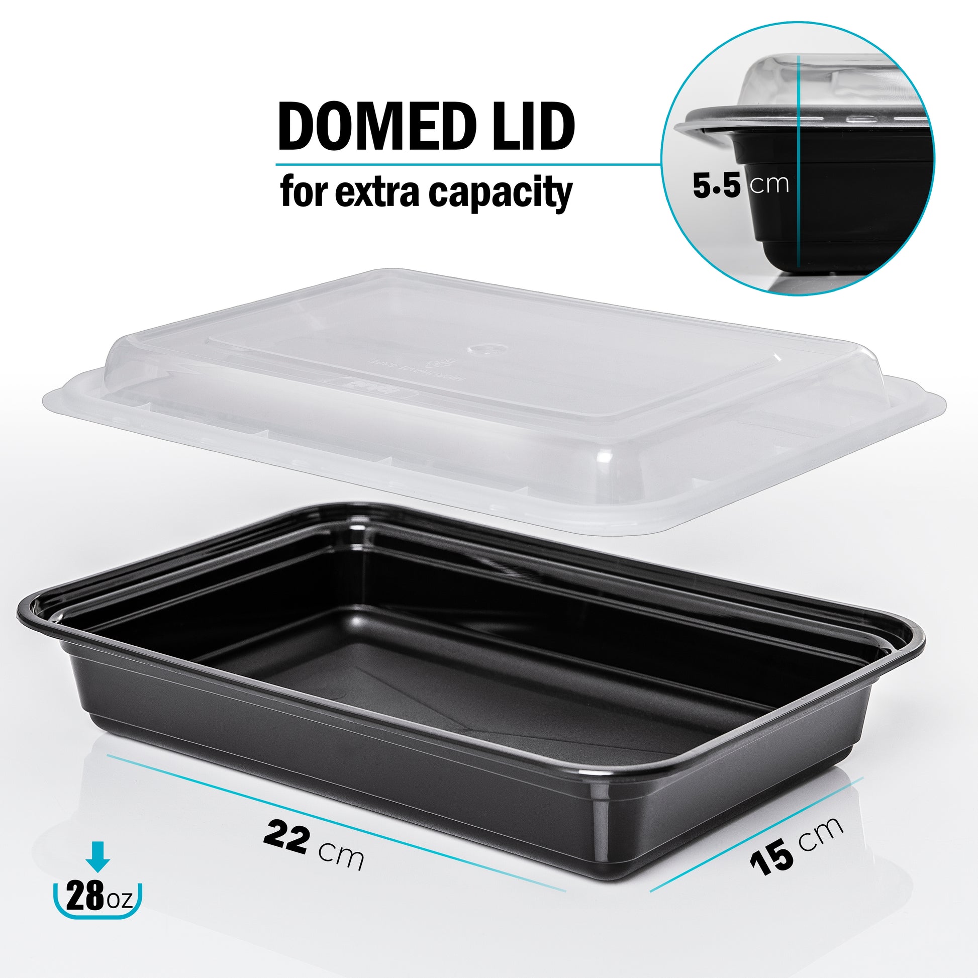 Meal prep superstars that keep your portions fresh. Volume: 828ml (28oz) | Dimensions: 22cm x 15cm x 5.5cm | Material: BPA-free food-safe PP5 plastic