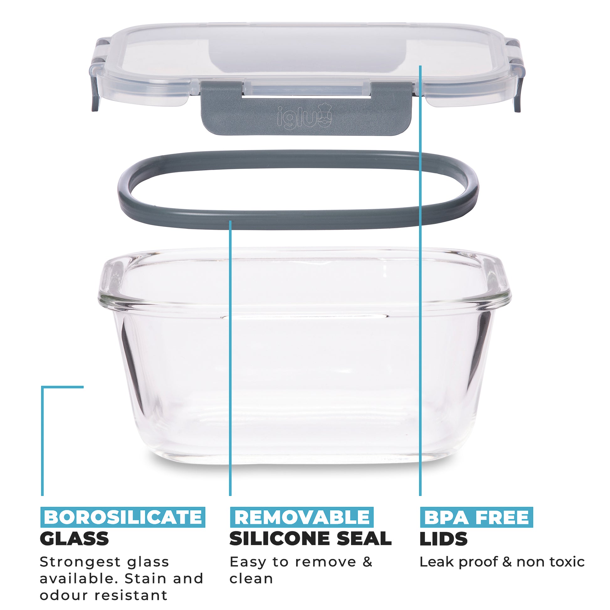 Neatly stack meals or snacks with this space-saving square glass set. 320ml(11oz):12.4cm | 520ml(18oz):14.5cm | 800ml(27oz):16.8cm | Material:Borosilicate glass | 3 PACK